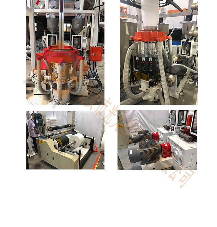 A+B+A三層共擠吹膜機無論是HDPE、LDPE還是LLDPE都有其獨特的特性材料。通過多層共擠提高了薄膜的物理強度,并使用了主機供給的內(nèi)外層材料,可以減少主體的結(jié)構(gòu),同時降低成本和能耗。 該擠出機采用兩種相同或不同的塑化擠出方式對共擠機頭進行擠出,從而提高了薄膜的物理性能,增加了其強度,使薄膜具有良好的阻隔性和氣密性。 本機采用先進的連續(xù)旋轉(zhuǎn)頭,產(chǎn)品光滑、均勻性好,保證了包裝機、印刷機等后續(xù)工藝設(shè)備對薄膜質(zhì)量的要求。